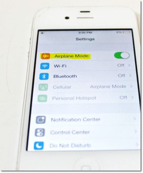 비행기 모드를 켜고 충전기에 연결하세요.