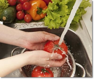 씻어내는 것입니다. 채소와 과일은 흐르는 물에