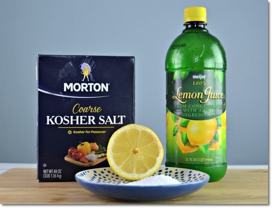 레몬에 소금을 묻히고 녹슨 칼 부분을